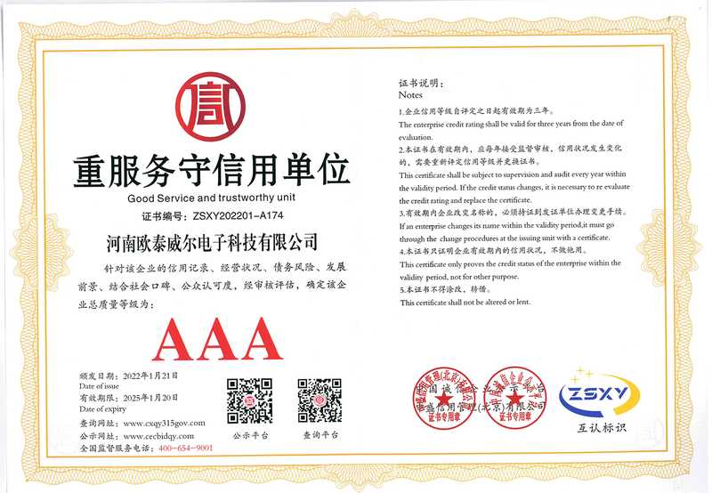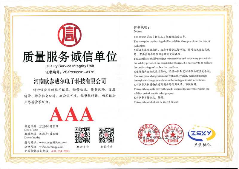質(zhì)量與信譽(yù),是歐泰威爾人永遠(yuǎn)的追求,用優(yōu)良的品質(zhì)和服務(wù),為顧客提供優(yōu)質(zhì)的產(chǎn)品解決方案,持續(xù)改進(jìn)管理體系。